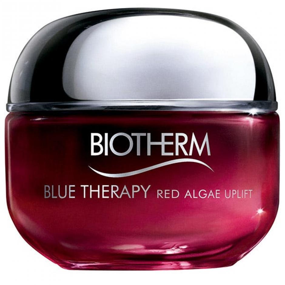 Blue Therapy Red Algae Uplift de Biotherm, crema antiedad pensada para las pieles maduras, cuya fórmula aprovecha el poder tensor de las algas rojas y de los péptidos de colágeno para lograr un cutis más rejuvenecido y con contornos redefinidos. Además contiene vitaminas E y C, las cuales ofrecen beneficios antioxidantes.