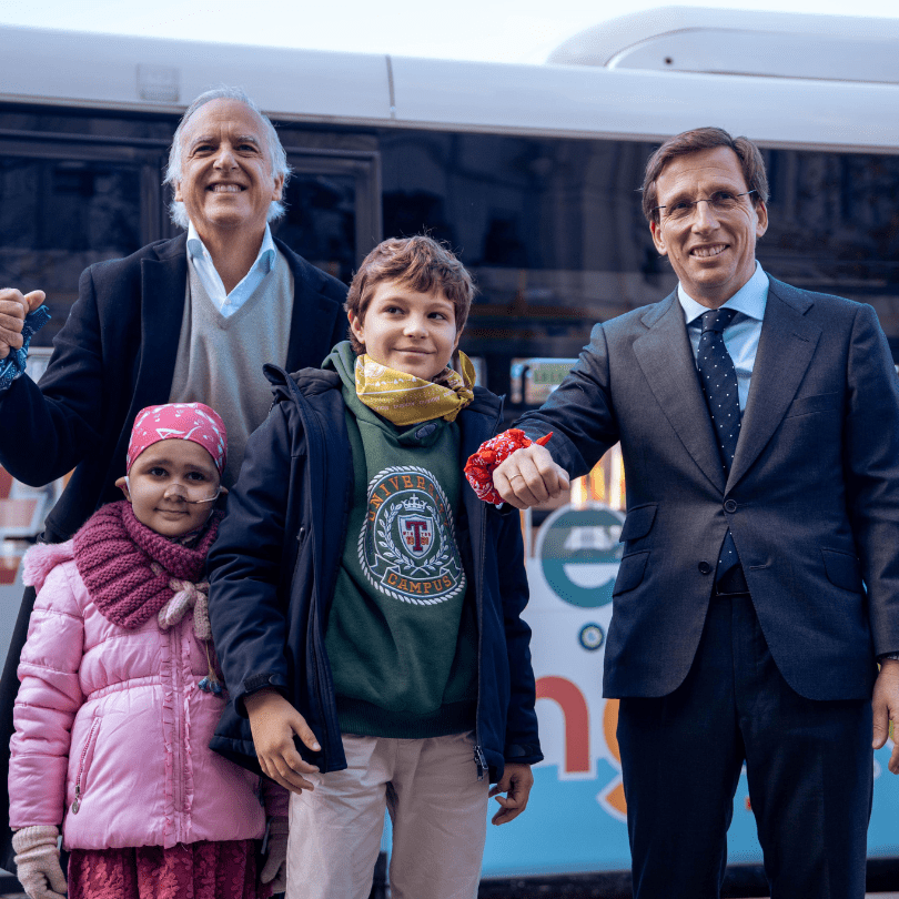 Antes de la puesta de largo del proyecto de la ‘Casa Aladina’, el alcalde de Madrid y el presidente de la Fundación Aladina han presentado la nueva campaña de lucha contra el cáncer infantil de la fundación en la plaza de Cibeles. Para dar visibilidad a esta iniciativa solidaria en la que participa desde 2021, la empresa municipal ha vinilado íntegramente uno de sus autobuses.