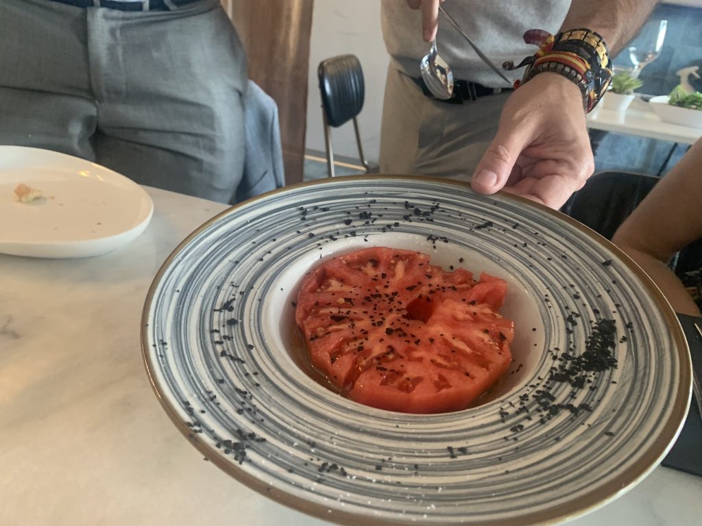 No te puedes ir sin probar el tomate rosa con vinagreta dulce y sal negra que hacen en la casa.