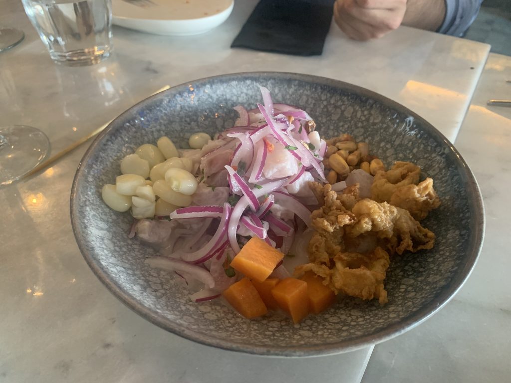 Productos del mar según temporada, zamburiñas, anchoas del cantábrico, calamaritos fritos, gambones al estilo Cha-Thaí o el magnífico ceviche del chef.