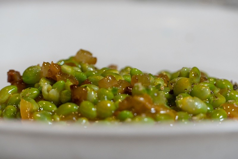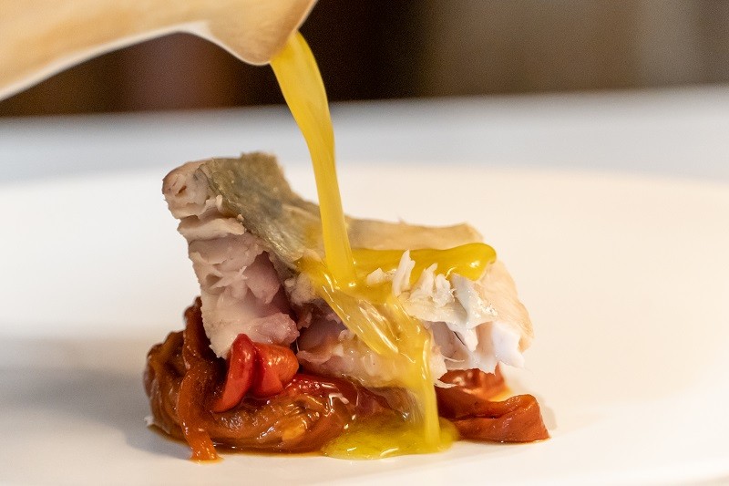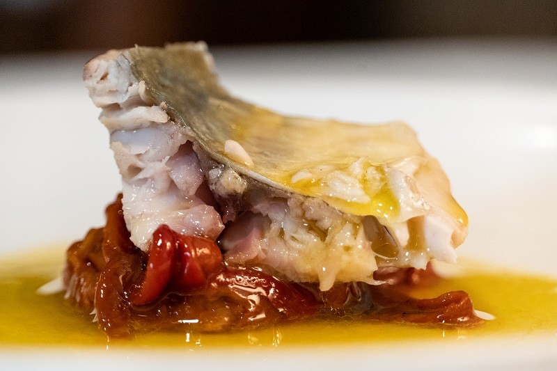 Una receta donde confluyen equilibradamente tradición y vanguardia, con unos magníficos matices que saboreamos gustosamente, antes de pasar a probar los atrevidos garbanzo pedrosilllano con manitas de lechón rellenas y encurtidos.