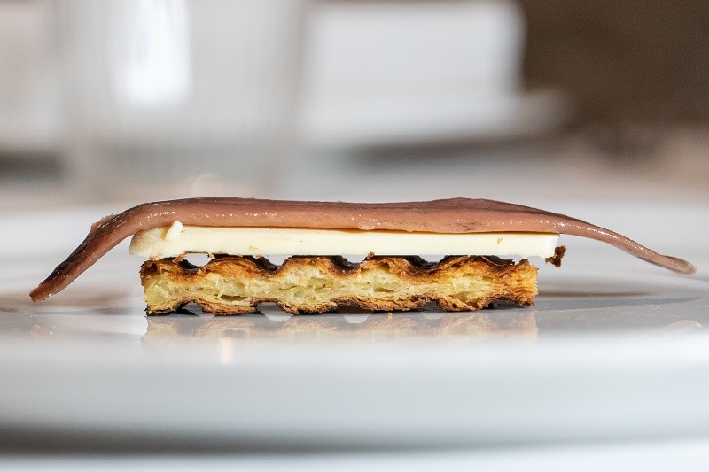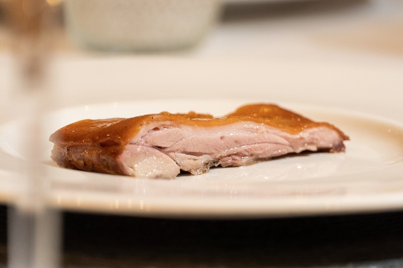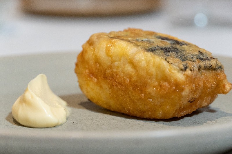 Un plato rotundo y con un divertido guiño castizo, que dio paso a un original canelón gratinado de carrilladas de cochinillo estofadas.