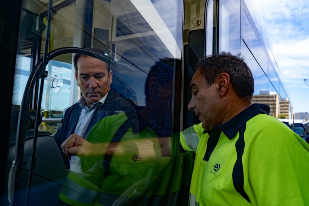 Acompañado por el director gerente de la empresa pública, Alfonso Sánchez y durante la que ha supervisado el funcionamiento y las características de estos últimos vehículos de gas natural comprimido que circularán por las calles de la ciudad.