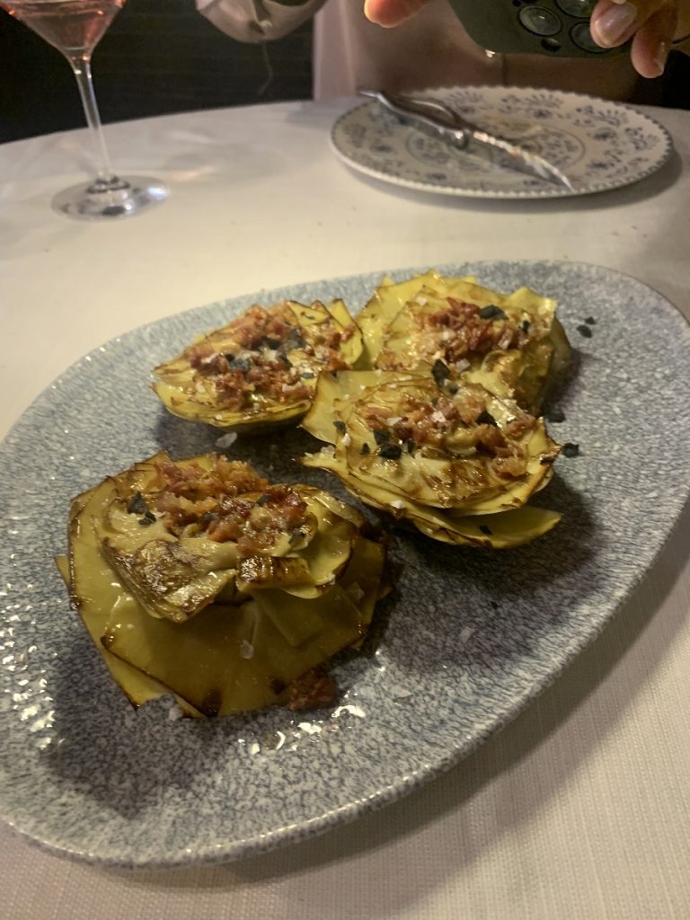 Nos rendimos a una maravillosas Flores de alcachofa con foie y crujiente de jamón