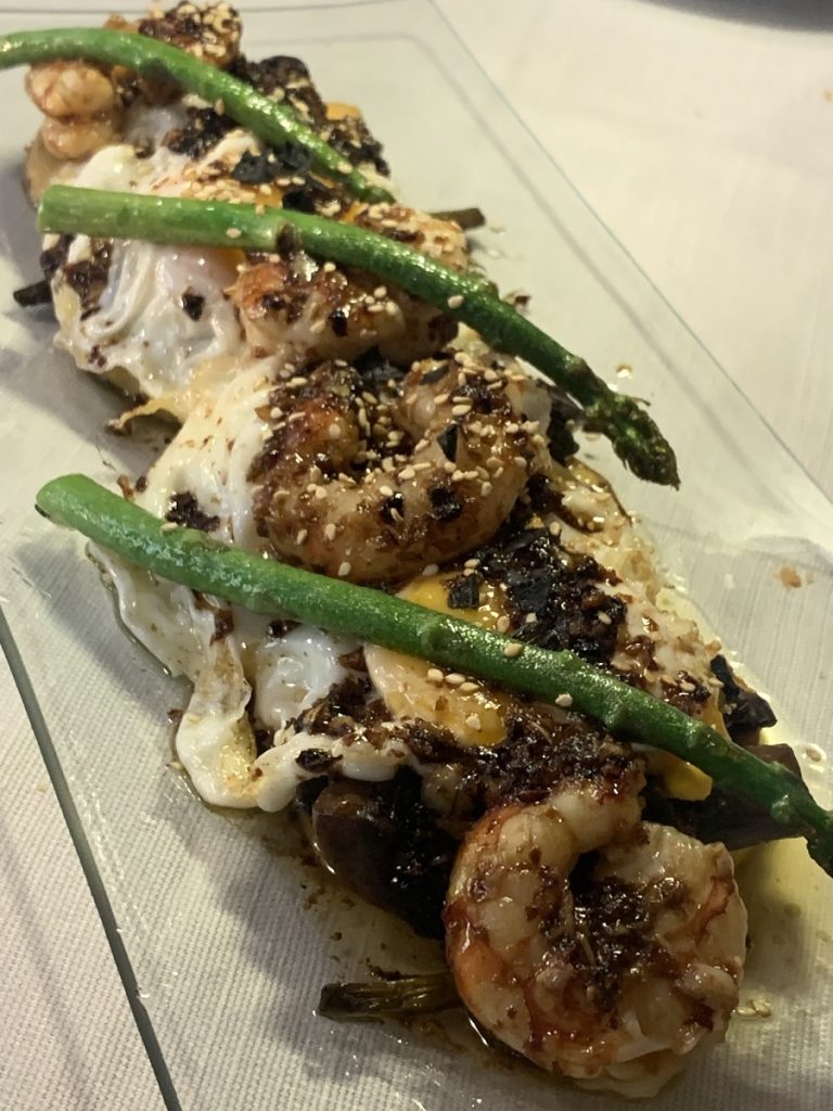 Gambones al ajillo, mar y huerta en una creación sorprendente