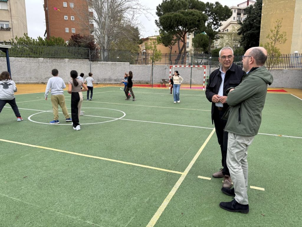 El delegado de Políticas Sociales, Familia e Igualdad, José Fernández, acompañado por el concejal de Carabanchel, Carlos Izquierdo, ha visitado hoy el CEIP República de Ecuador