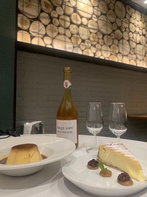 Guardamos sitio para degustar y saborear, la emblemática tarta de queso y su irresistible tembladera de flan. Un Tokahi Aszu 5 Puttonuos, le da el toque ajustado de dulzor a estos deliciosos postres de la casa.