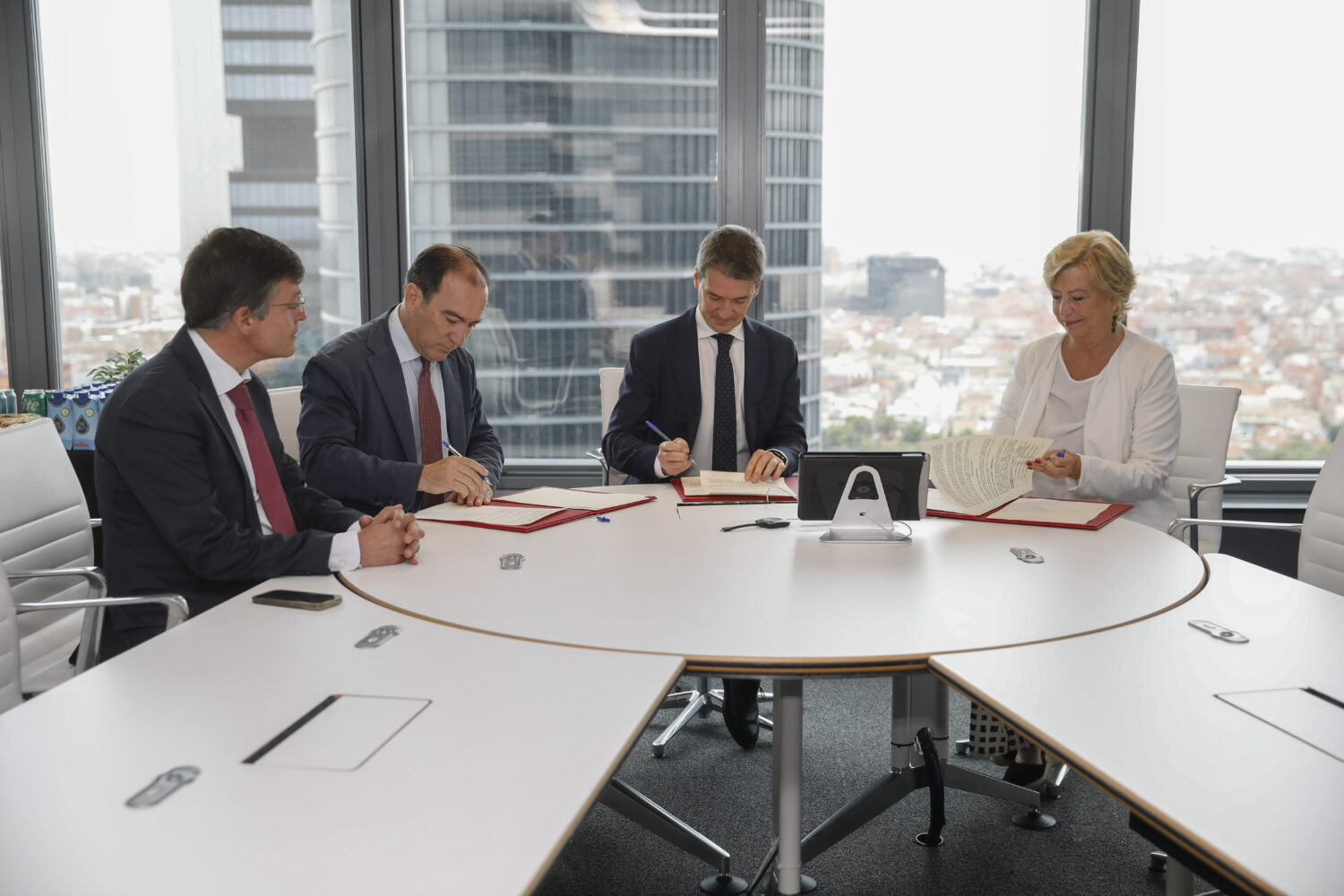Madrid, 25 sep de 2024.- El Ayuntamiento de Madrid y las Cuatro Torres de Castellana han firmado esta mañana una prórroga de cuatro años del convenio firmado en 2021.